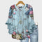 Подчертайте своята свежест и женственост с тази блуза в син цвят, украсена с богати цветни мотиви в нюанси на розово, лилаво и бяло. Романтичните детайли на ръкавите с волани добавят движение и елегантност, докато свободният крой прави тази блуза идеална за всички ежедневни и специални поводи.