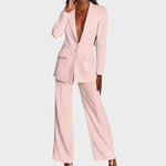 Дамски костюм, който съчетава изтънченост и модерен стил. Дългото сако с остри ревери, закопчаване с един копчета и джобове с капак красиво определя талията и визуално удължава фигурата. Панталоните са прави, с леко широки крачоли и гладка линия, осигуряваща чист, удължен профил и свобода на движение. Тъканта с красив драпиране предлага комфорт от сутрешната среща до вечерния излаз. Може да се носи като комплект или отделно – еднакво силно в офиса, на събитие или за официална вечеря.