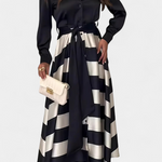Графична, изискана и модерна, роклята Дълга Ризова Рокля с Пояс преосмисля силуета на ризата с редакторски обрат. Смелите райета, широка пола и пояс в същия цвят я правят впечатляваща част, която с елегантност ще подчертае всяка ситуация.
