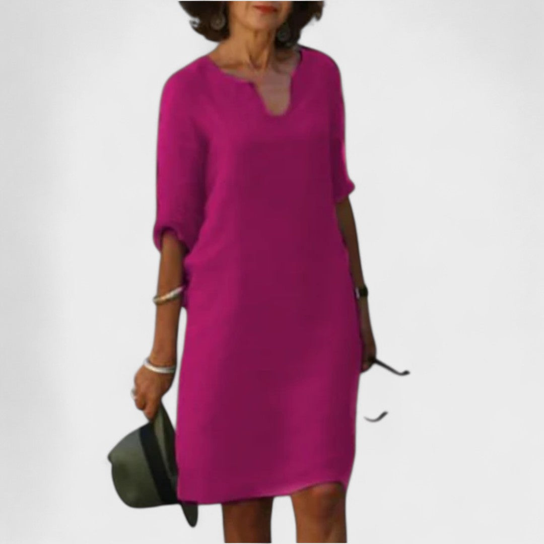 Тази рокля излъчва проста елегантност и модерен силует, който подхожда на всяка фигура. С леките си материали и неформален дизайн, тя е перфектна за дневни и вечерни комбинации. Може да се носи с сандали за небрежен вид или с токчета и модни аксесоари за изискан стил.