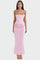 Импозантна и сексуална рокля с корсет без презрамки и тесен крой, който подчертава силуета. Детайлът с елегантен набръчкан колан придава женственост и уникален флуид, докато макси дължината осигурява вечна елегантност. Идеална за тържествени вечери и блестящи изяви.