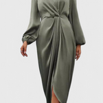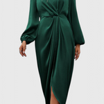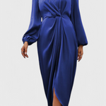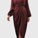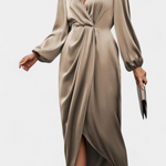 Влезте в елегантността на нощта с Андреа, рокля с течащ силует, проектирана да подчертае и очарова. С дълбок V-изрез, меки надути ръкави и набръчкан пояс, който акцентира на фигурата, Андреа носи sophistication с всяко движение. Страничният разрез добавя модерен и съблазнителен нюанс, идеален за нощи, които изискват незабравим стил.