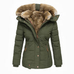 Гъстата и мека козина около качулката не само придава луксозен външен вид, но и защитава от студен вятър и ниски температури. Подчертава лицето красиво и добавя елегантен акцент към цялата визия.