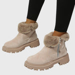 Тези ботуши впечатляват с модерна и уютна визия, която лесно се комбинира с различни ежедневни тоалети. Пухкавата горна част добавя топлина и стил, а високата подметка придава стабилност и изтънчен завършек. Идеални за жени, които искат едновременно удобство и модна визия през зимата.