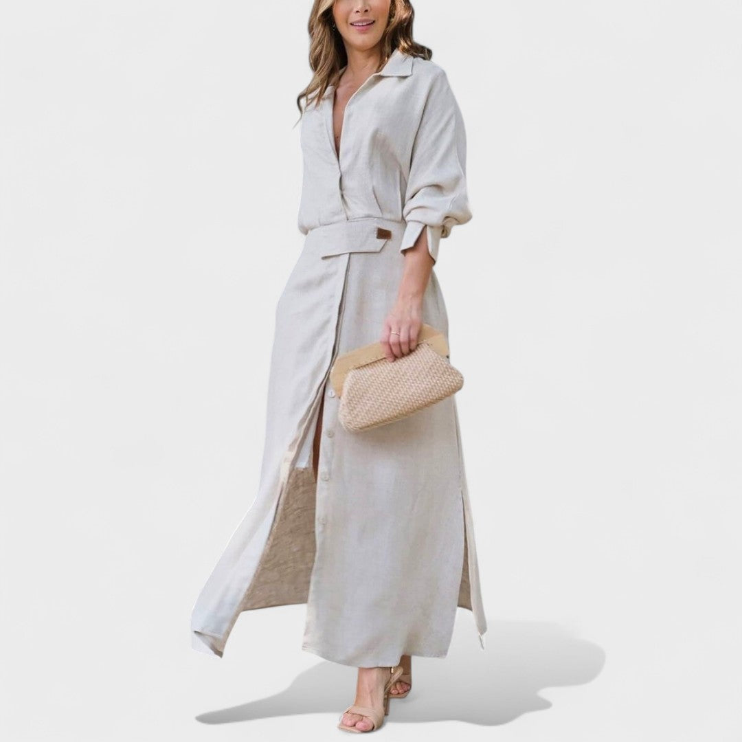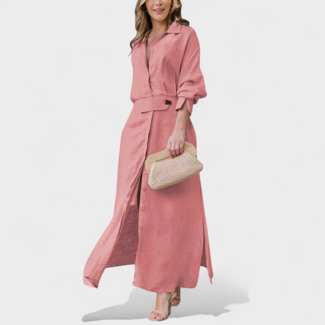 Гордана - Елегантна дълга рокля с V-образно деколте