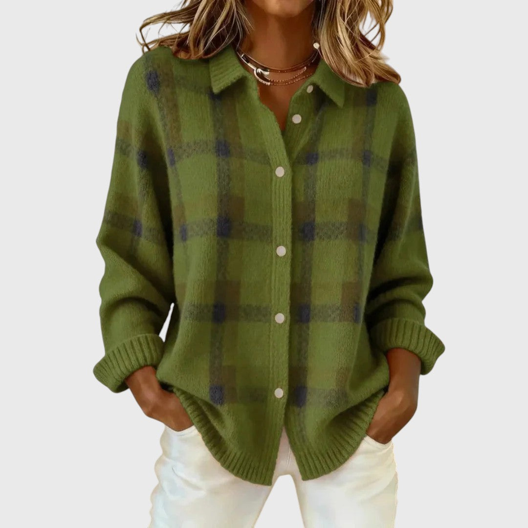 Пуловерът евелин впечатлява с елегантна кройка и стилен каре мотив, който добавя мек, женствен характер. Универсалният дизайн го прави подходящ както за ежедневието, така и за по-специални поводи.