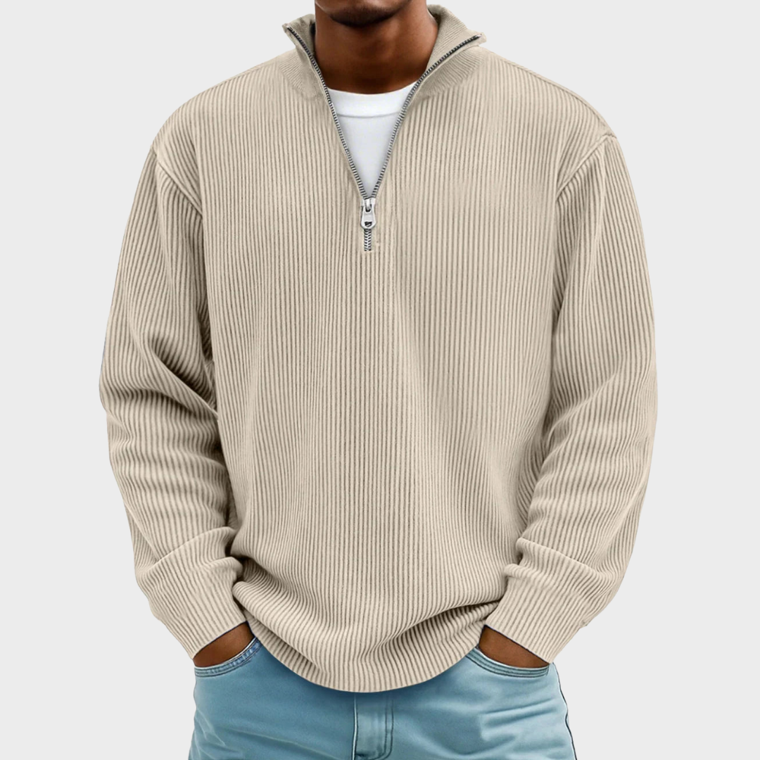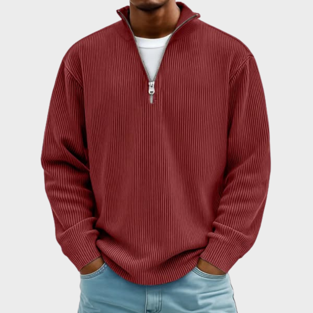 Открийте дизайна, който предефинира небрежния шик. Този пуловер съчетава модерна и изчистена естетика с набрана текстура, която добавя дълбочина и изискан акцент към визията Ви. Съвременната му кройка и практичното закопчаване с висока яка предлагат максимална гъвкавост, позволявайки Ви да регулирате нивото на топлина и стил според повода. Това е идеалният избор за мъжа, който търси отличителна дреха, способна да го придружава от неформалната работна среда до уикенд разходките, като винаги гарантира забележително присъствие и несравним комфорт.