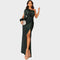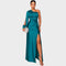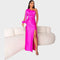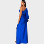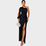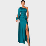 Тази вечерна рокля излъчва изтънченост и модерен дизайн. Асиметричният крой с едно ръкави и ефектният набръчкан детайл в талията подчертават женствената силуета, докато дълбокият разрез добавя доза sensuality и елегантност. Идеална е за тържествени поводи, гала вечери или специални събития, на които искате да блеснете и да оставите незабравимо впечатление.