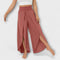 С флуиден дизайн и разрези, напомнящи на обгръщаща пола, тези панталони са перфектни за тези, които търсят свобода, свежест и стил в един вид. Леката тъкан следва движенията на тялото с елегантност, докато високата талия подчертава силуета. Идеалната част за горещи дни и небрежни комбинации с нотка на изисканост.