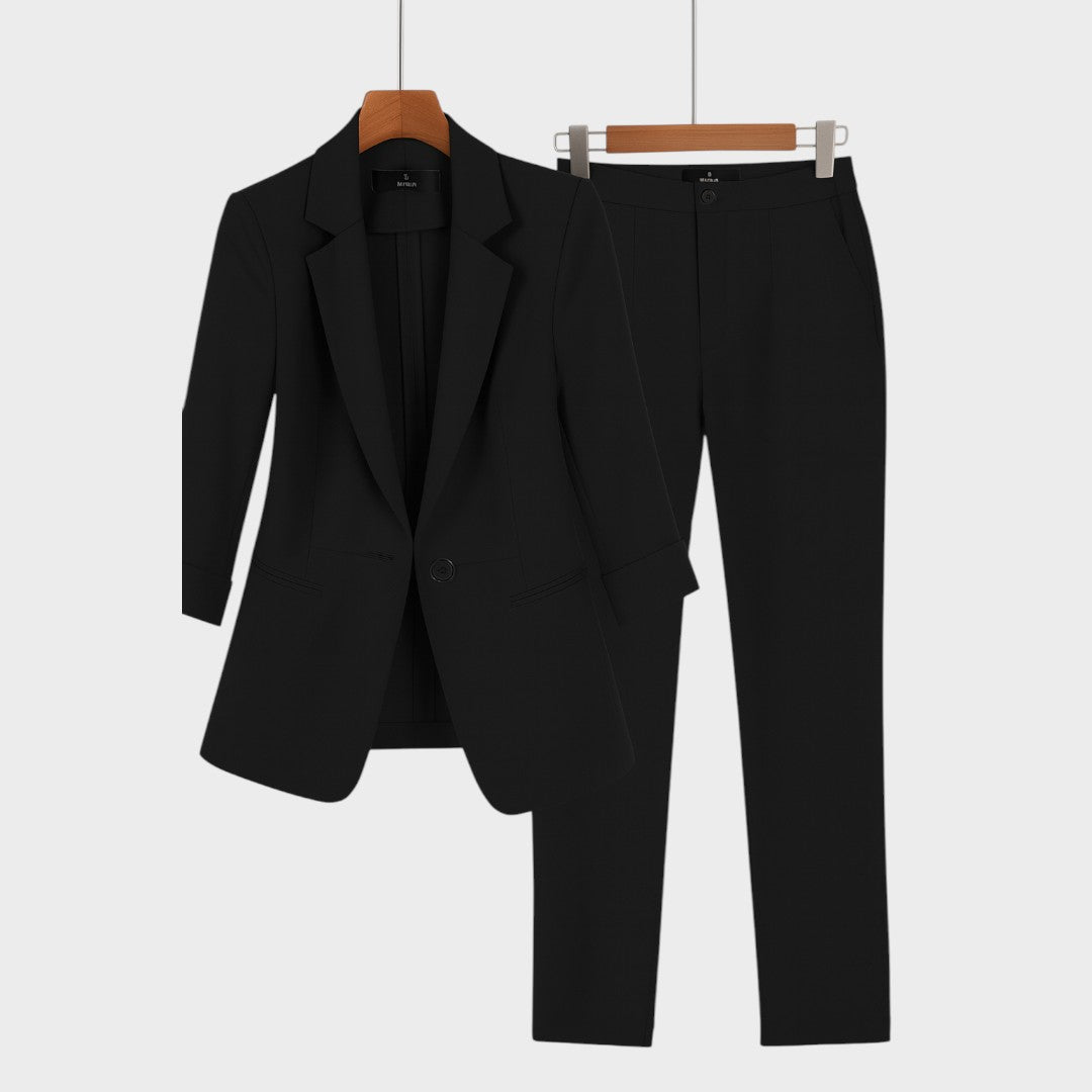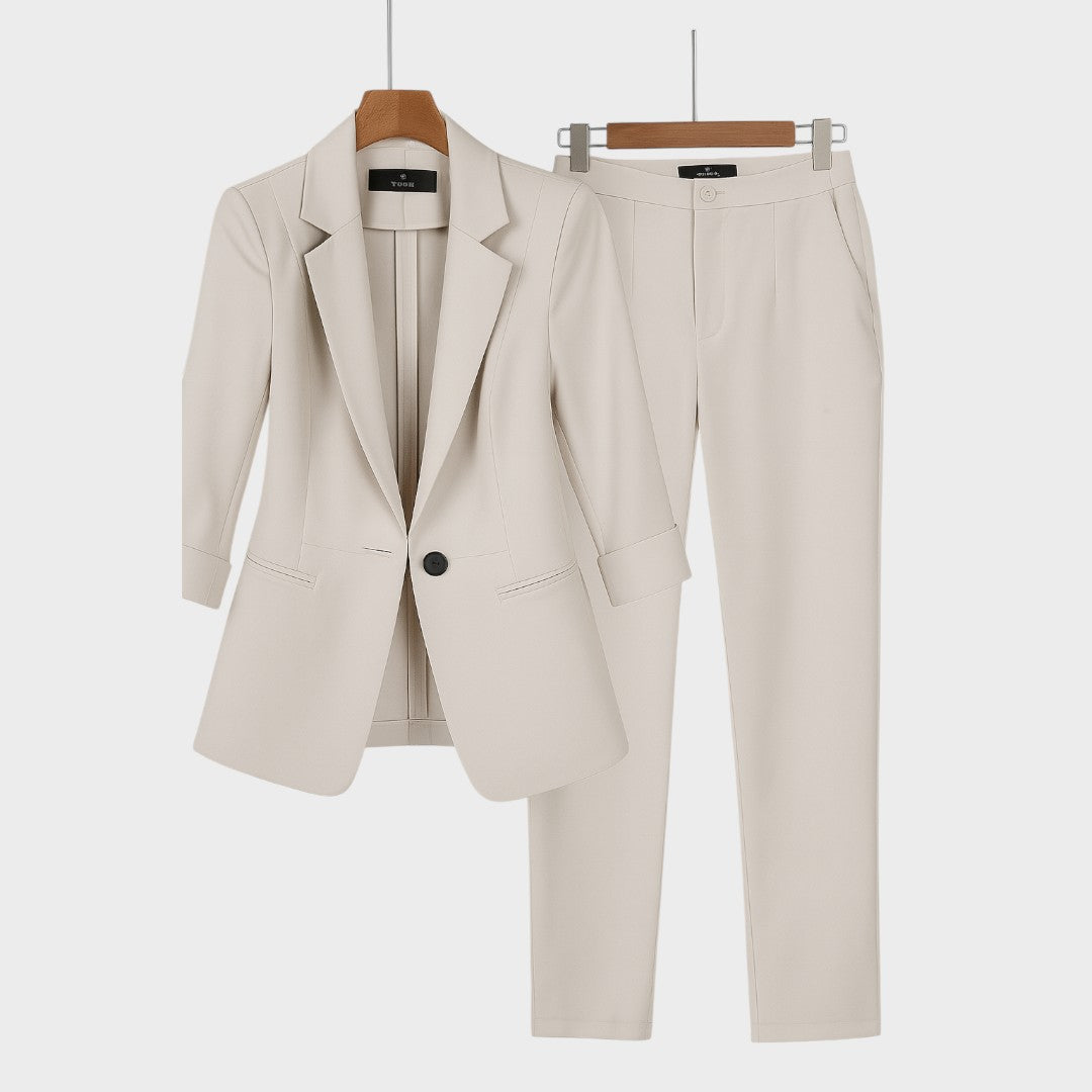- Крой на сакото, адаптиран към тялото с лека структура за професионален вид.