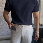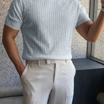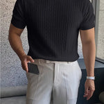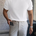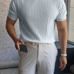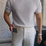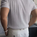 Утвърдете стила си с лекота благодарение на този основен трикотажен пуловер, проектиран да вдъхва увереност.