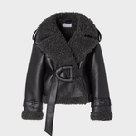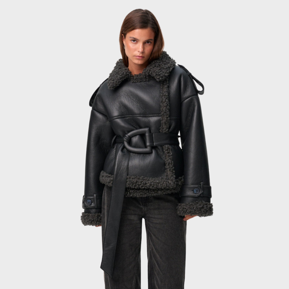 Това палто преосмисля понятието за съвременна елегантност. Структурираният дизайн в комбинация с обемната яка и акцентирания колан оформят силует, излъчващ характер и стил. Идеален избор за студените дни или моменти, когато искате да впечатлите с присъствие – гарантира изтънчена визия и модерно излъчване при всеки повод.