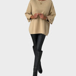 Пуловерът „Фабиана“ съчетава изтънченост и комфорт в едно. Със своя свободен силует и фини декоративни копчета, той придава стилен и женствен акцент на всяка визия. Перфектен както за делови срещи, така и за ежедневието, този модел е идеален избор за жени, които ценят съвършения баланс между удобство и елегантност.