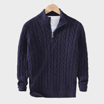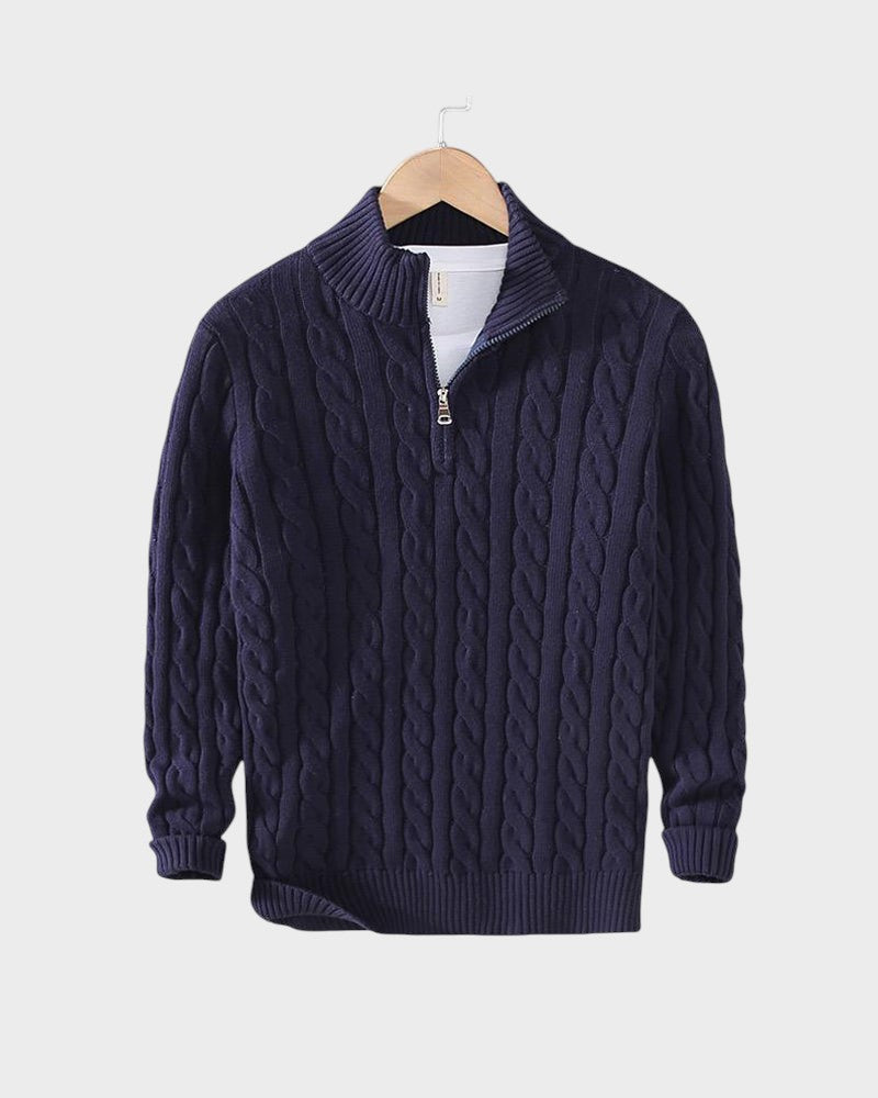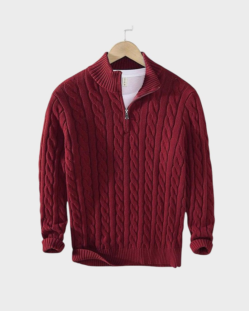 Стилен и удобен пуловер, който комбинира класически дизайн с модерен акцент. Изработен от мека и висококачествена материя, той осигурява комфорт и топлина през целия ден. Фините плетени детайли добавят изтънченост, а ципът в горната част позволява лесно регулиране според настроението и повода. Подходящ както за ежедневието, така и за по-елегантни случаи.