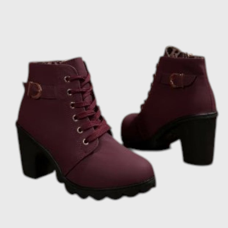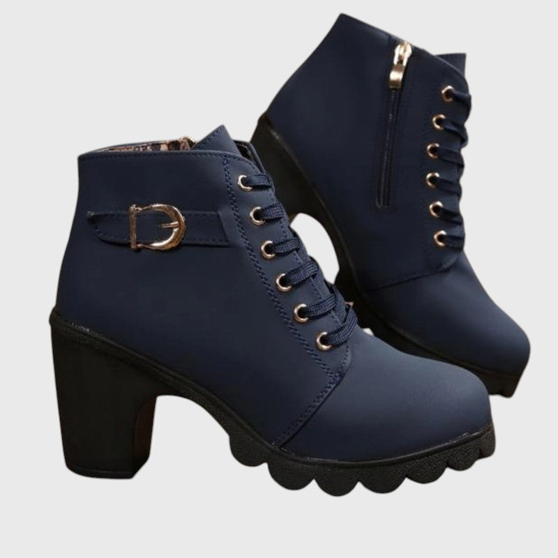 Ботите Катни комбинират елегантна визия и ежедневна практичност. Уникалните декоративни шевове, украсената каишка и стабилният ток придават изискан и уверeн външен вид, подходящ за всеки тоалет.