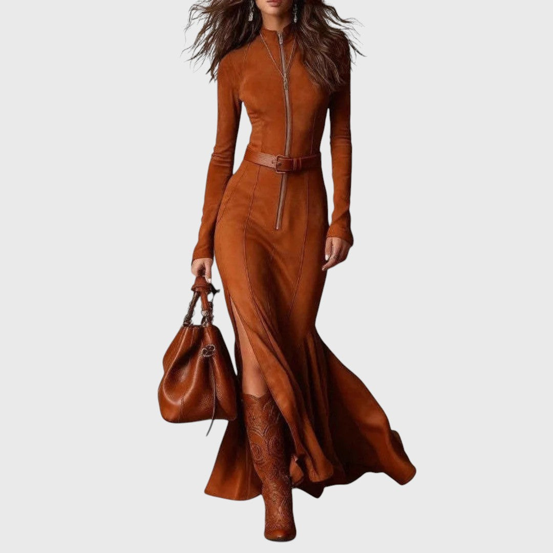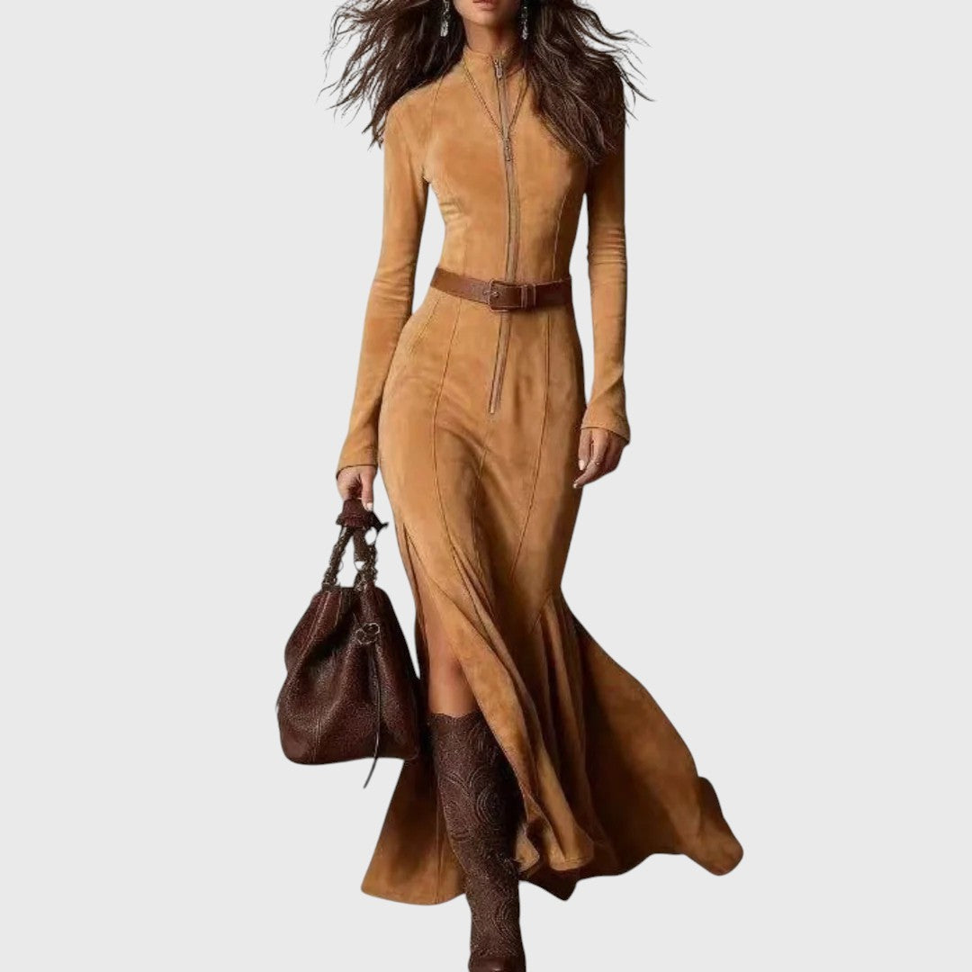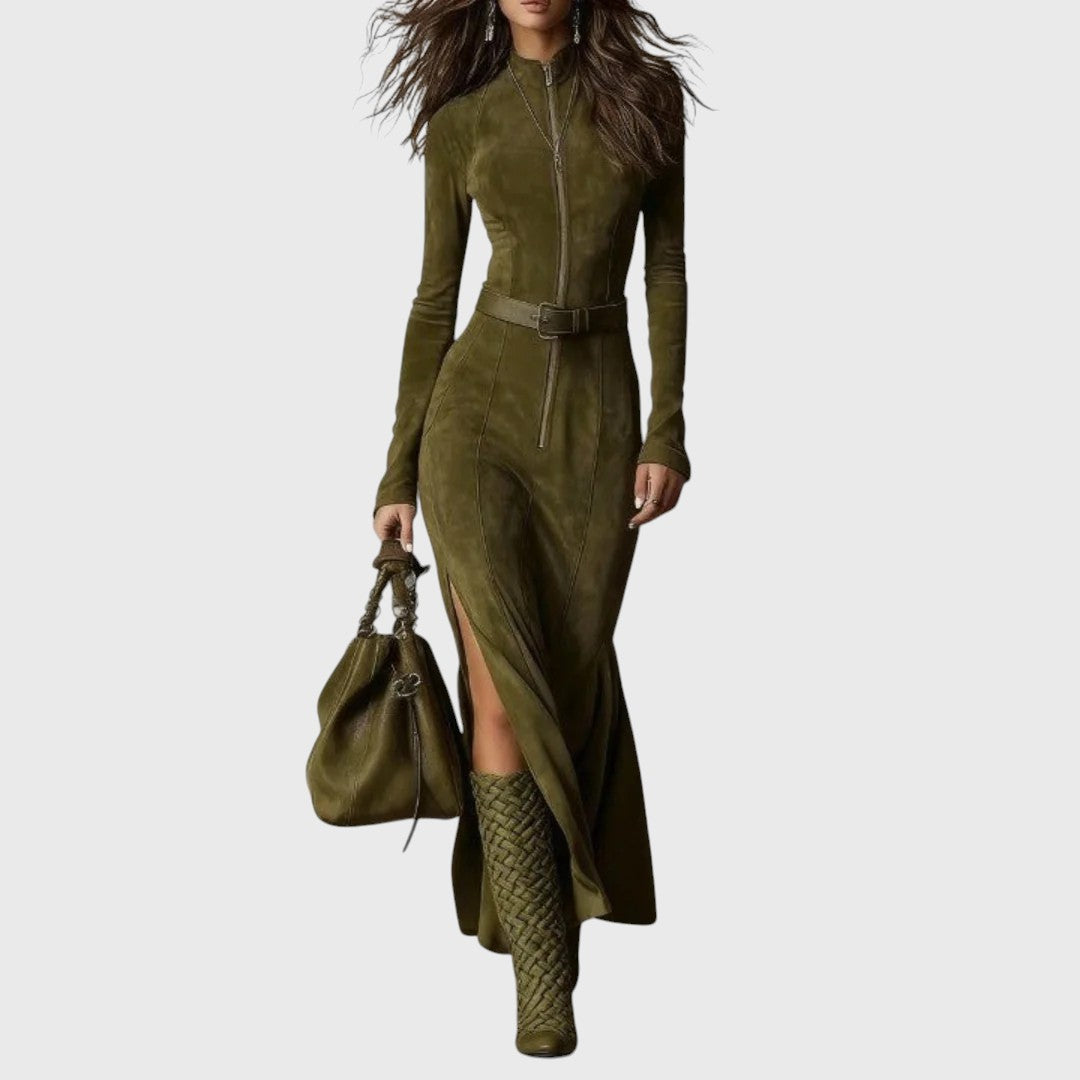 Дългите ръкави, високата яка и стилният цип отпред придават модерен, завършен вид. Разрезът в долната част позволява лекота при движение и добавя женствено излъчване.