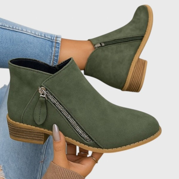 Лесни за обуване благодарение на страничния цип, а стабилният ток добавя елегантност и сигурност при всяка стъпка. Идеални за ежедневна употреба и специални поводи.